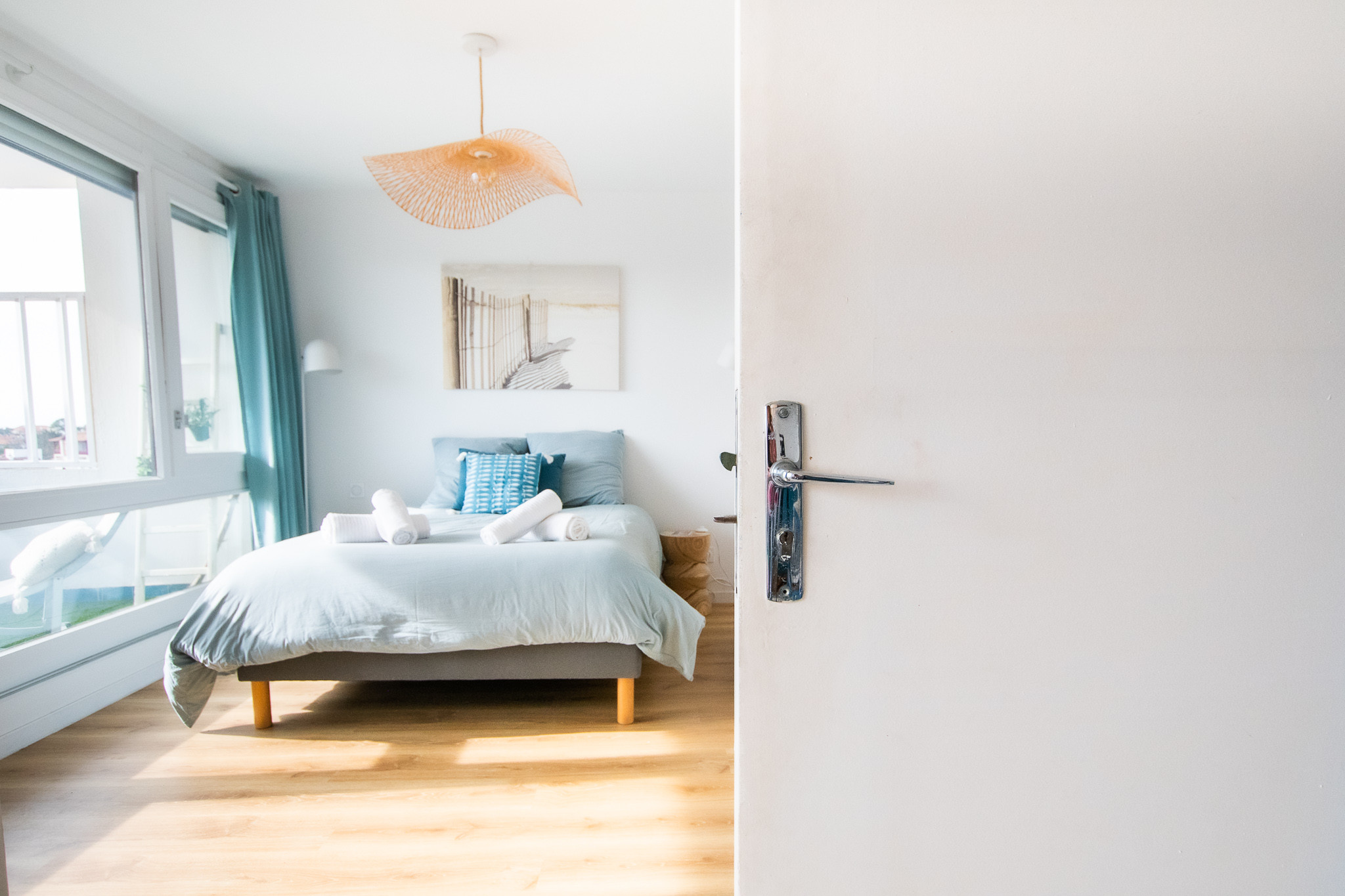 The apartment is ideally located, on a quiet street, less than 2 minutes' walk from the beach and cycle paths. You can do everything on foot or by bicycle: swimming, surfing, strolling along the seafront or visiting the local market.