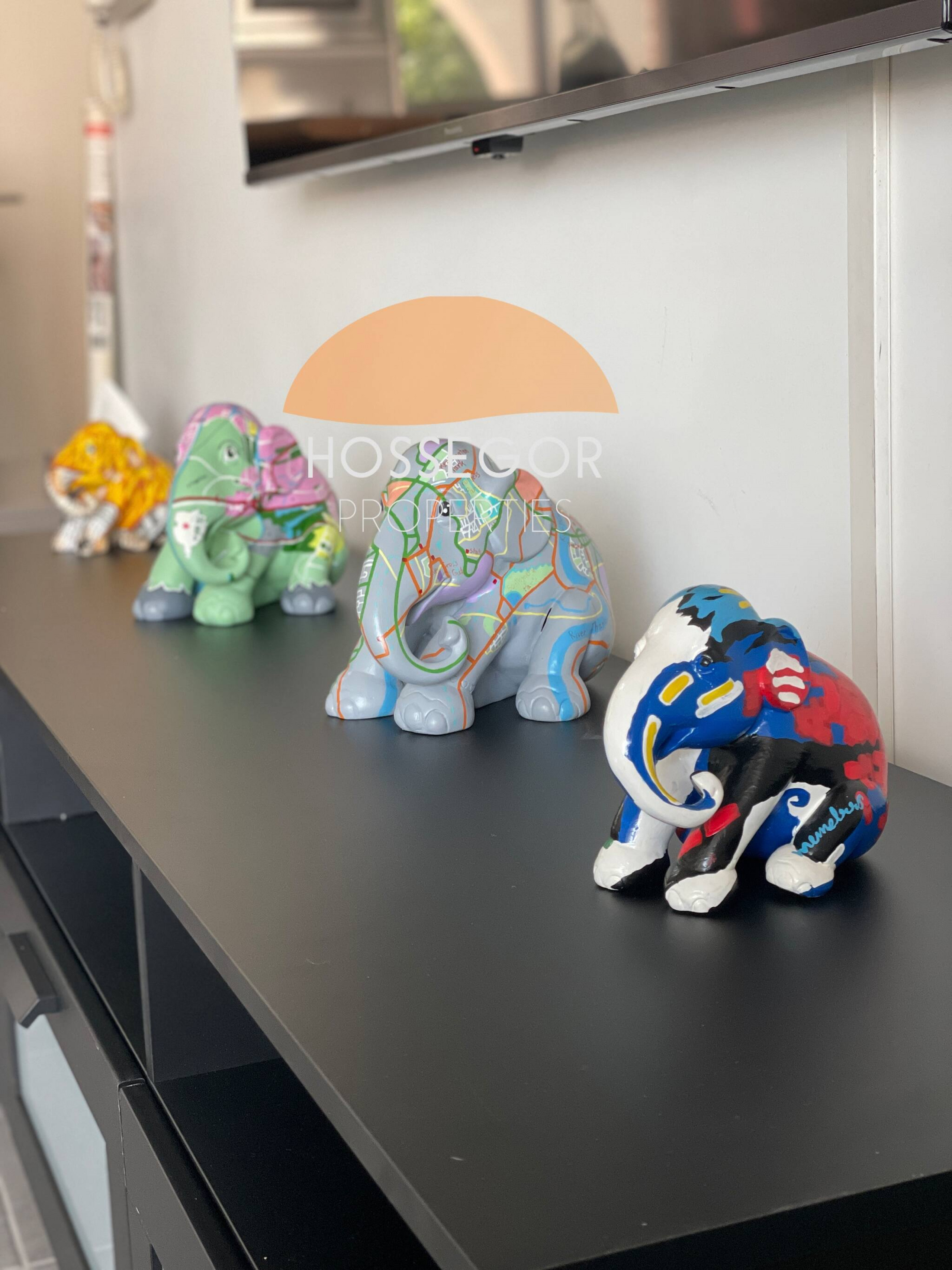 The entire apartment can be plunged into darkness thanks to its electric roller shutters. Also, it is fully air-conditioned.