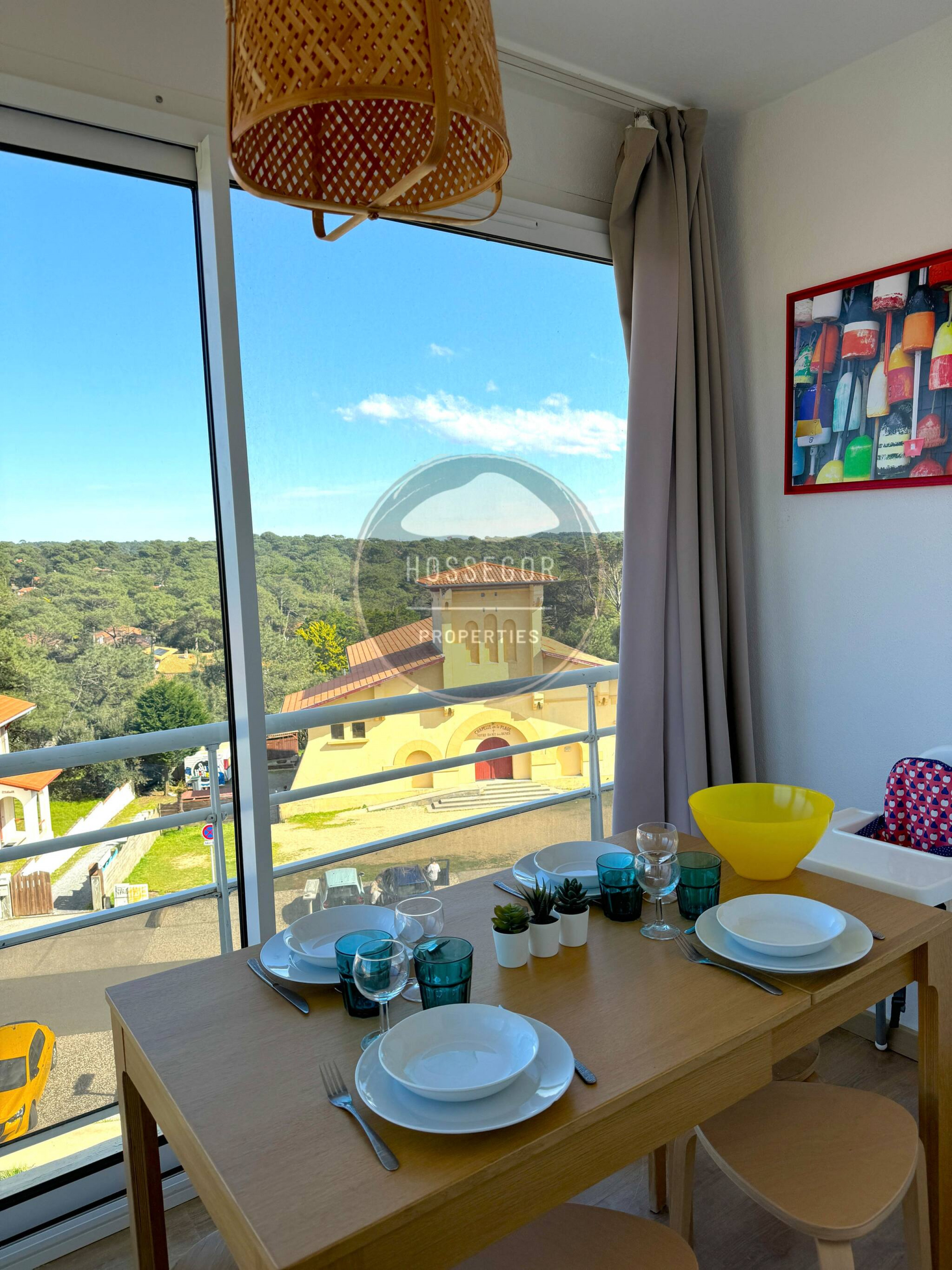 You will find a cosy and family-friendly atmosphere, on the 4th floor of a residence with a lift, with a breathtaking view. On the living room side, the ocean, on the dining room side, the pine forest. Enjoy this moment of total disconnection.