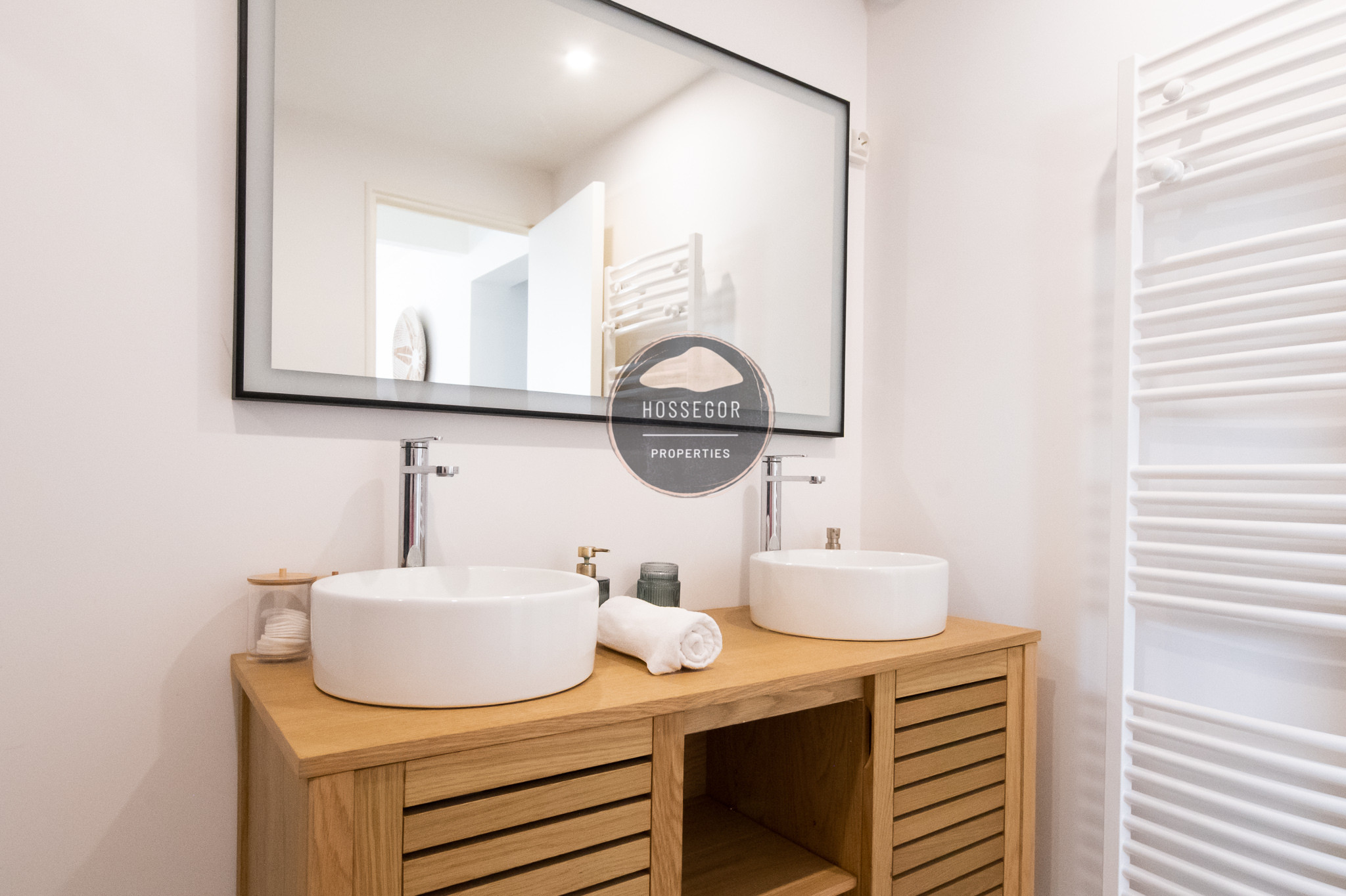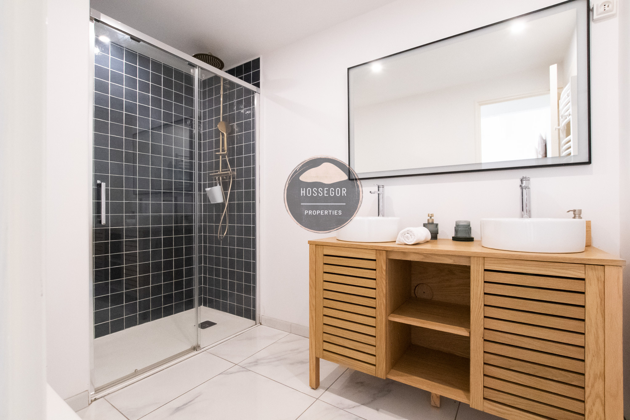 You will find 2 master suites offering optimal privacy and comfort. On the ground floor, there is 1 bedroom for adults or children, with 2 single beds that can be converted into a double bed (160x200), 1 dormitory bedroom, and a shower room with a double vanity unit, in a raw-chic spirit that summarises the villa's atmosphere.