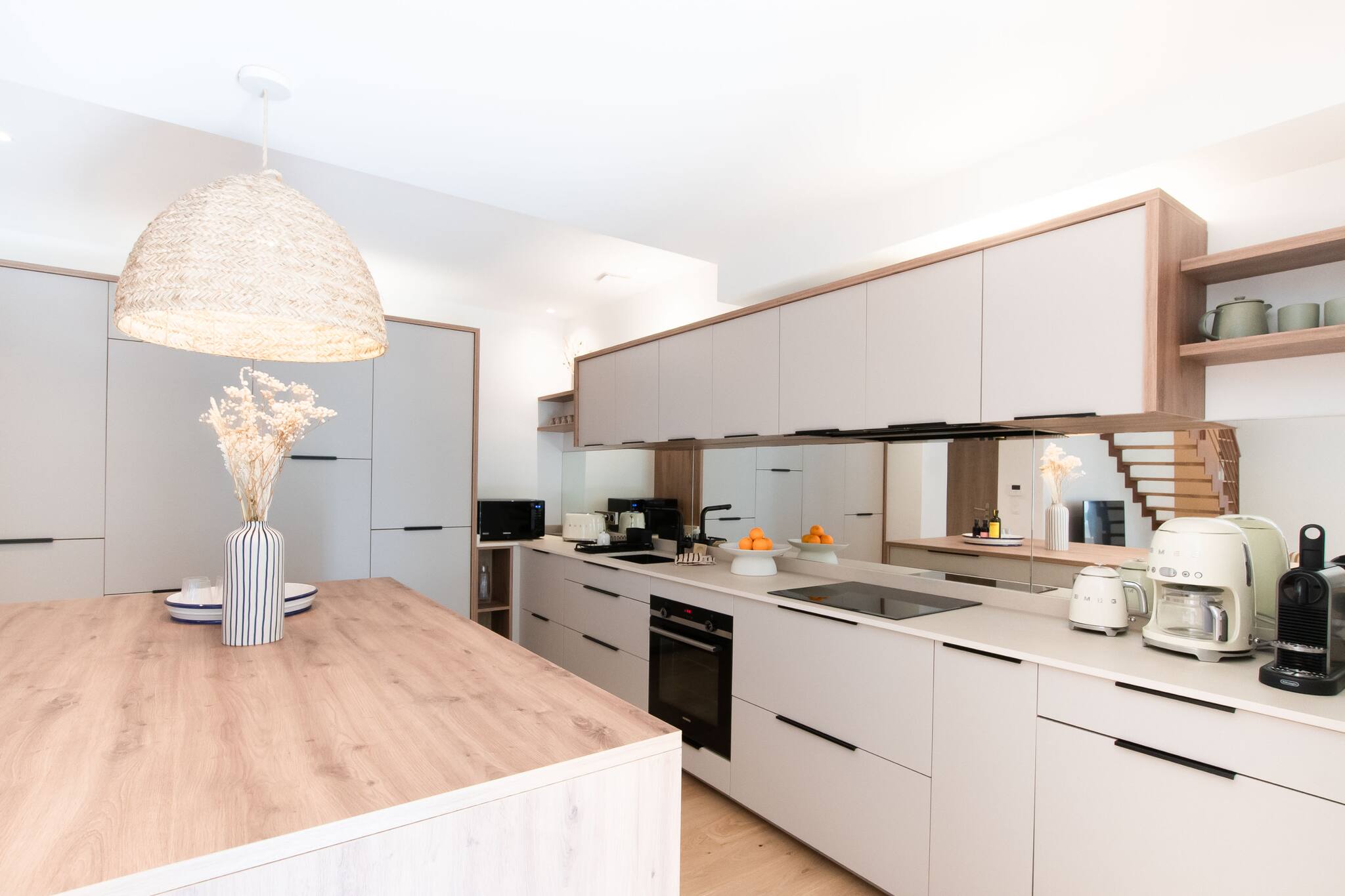 • Una cocina de alta gama diseñada para sus comidas de vacaciones, completamente equipada con pequeños electrodomésticos SMEG, máquina de café Nespresso y todo lo necesario al alcance de la mano;