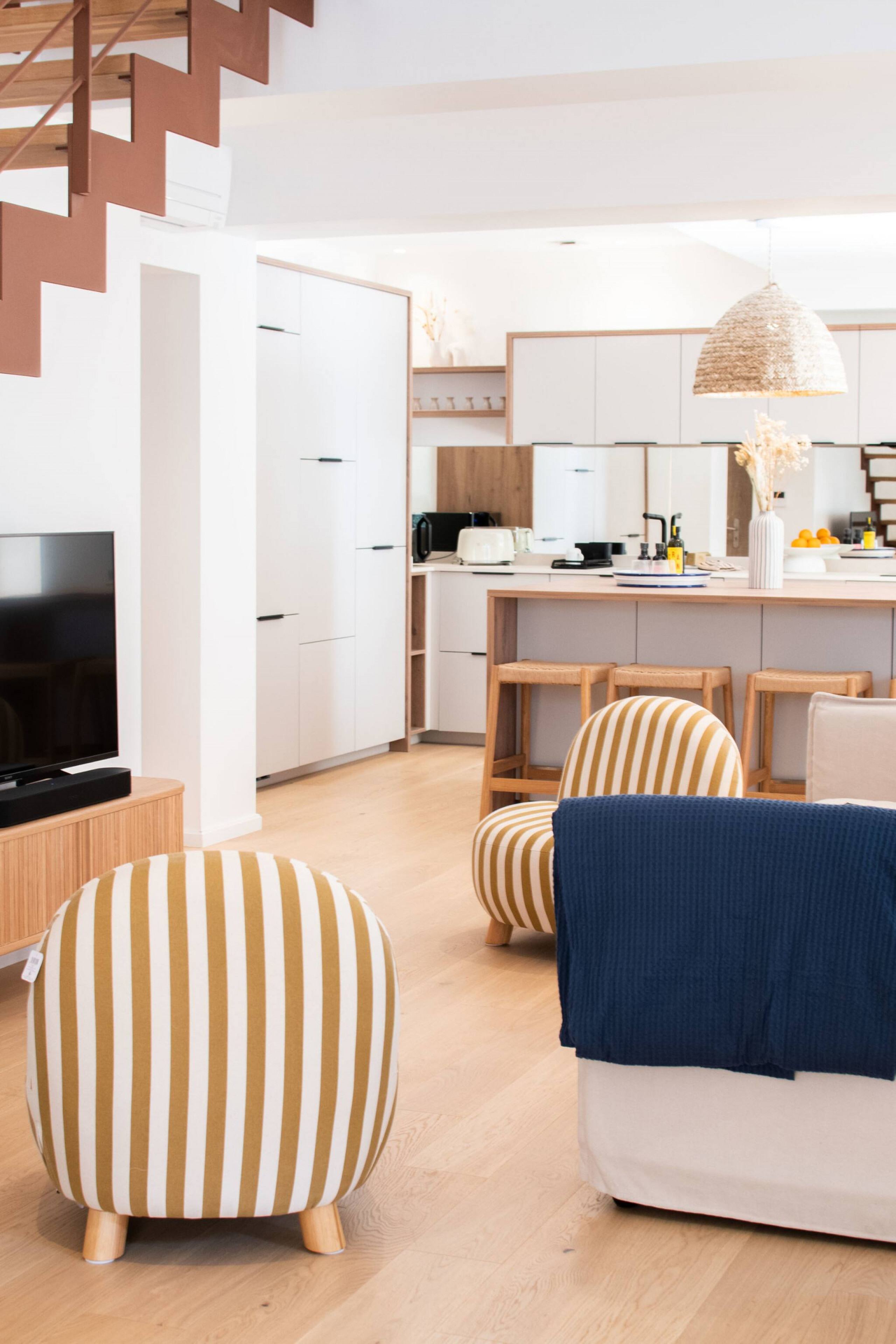 Aquí, todo ha sido pensado para su bienestar: materiales nobles, ambiente relajante, toques de madera y lino, y una atmósfera suave y acogedora donde es agradable reunirse después de un día junto al agua.