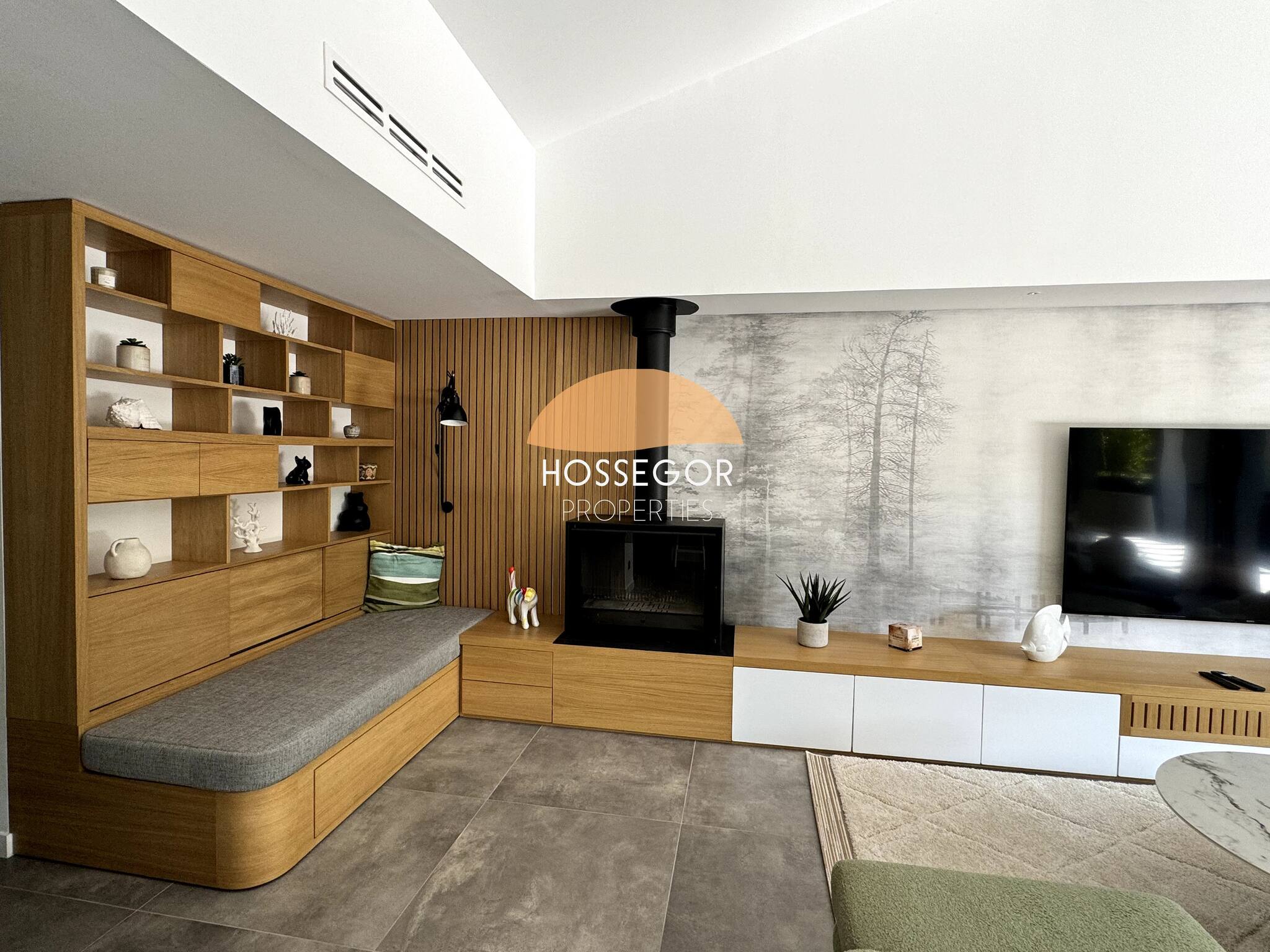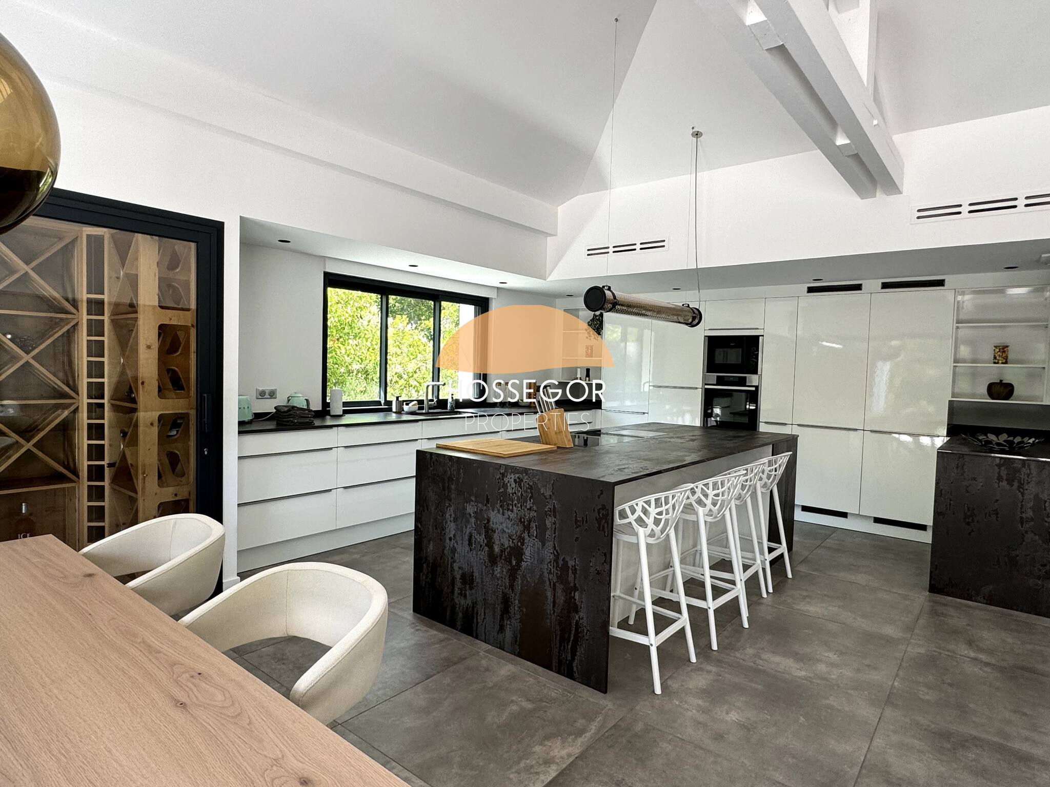 El espacio habitable consta de una sala de estar, un comedor con banco para mayor convivialidad y una cocina de colores suaves y claros. Accederá desde este nivel a una terraza anidada en los árboles para reunirse alrededor de una copa durante las largas noches de verano. Una segunda terraza más íntima con un rincón de comedor con una plancha y al borde de la piscina le permitirá compartir hermosos momentos de convivencia.