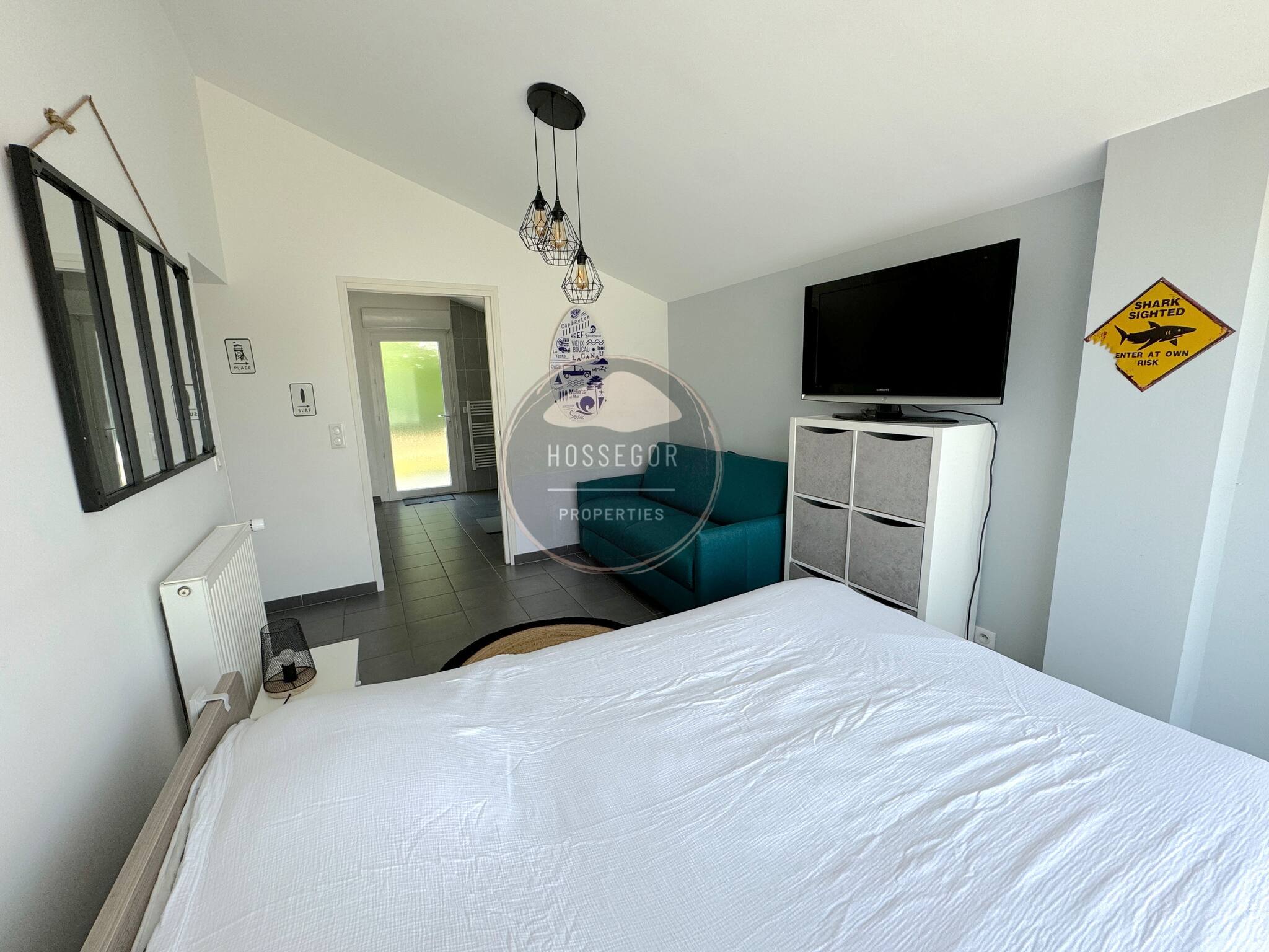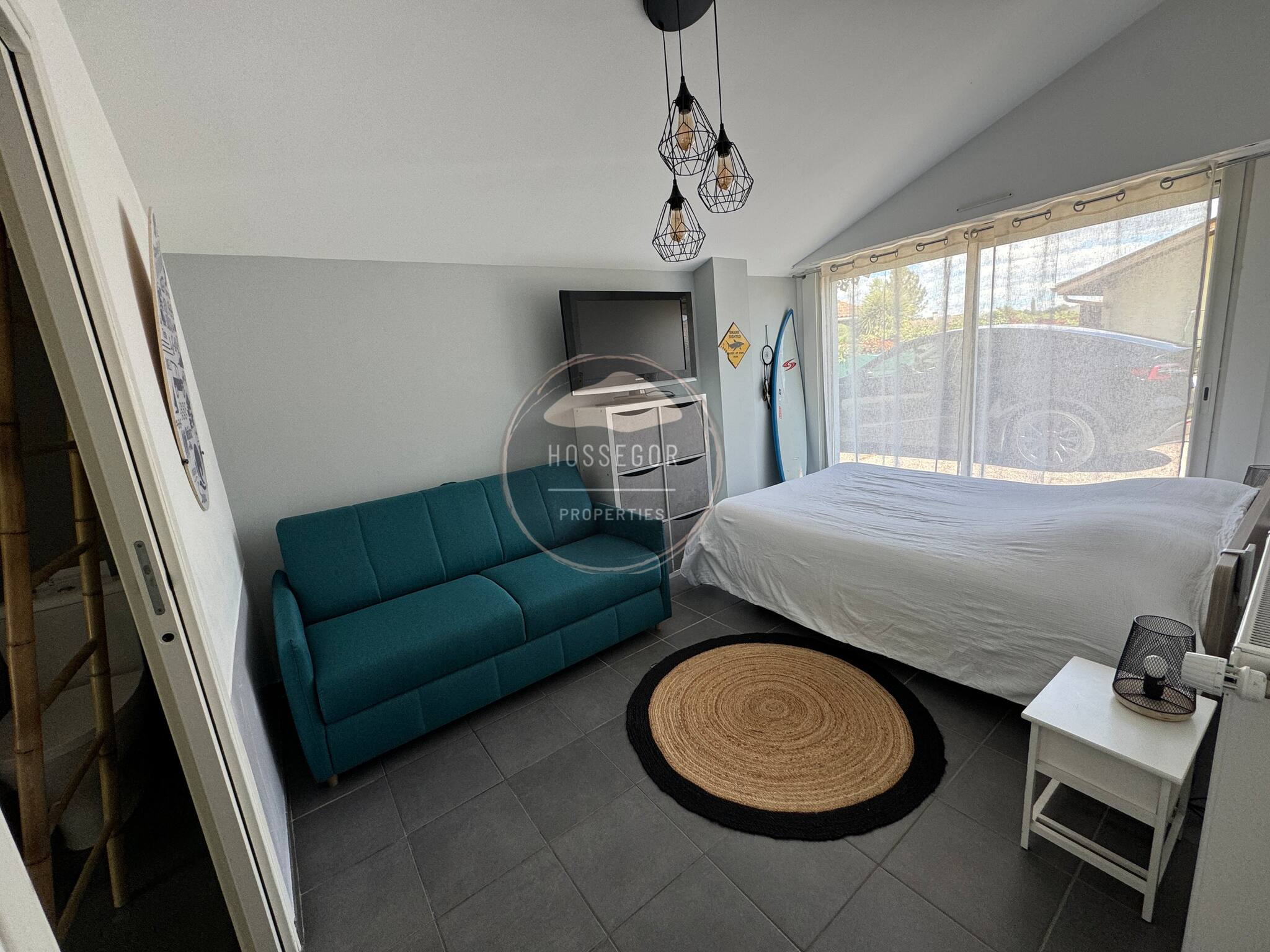 A proximidad de los comercios y del mercado de Soorts-Hossegor, 10 minutos en bicicleta del centro de la ciudad de Hossegor. Podrá unirse rápidamente al carril bici que le lleva al lago o a las playas de la costa.