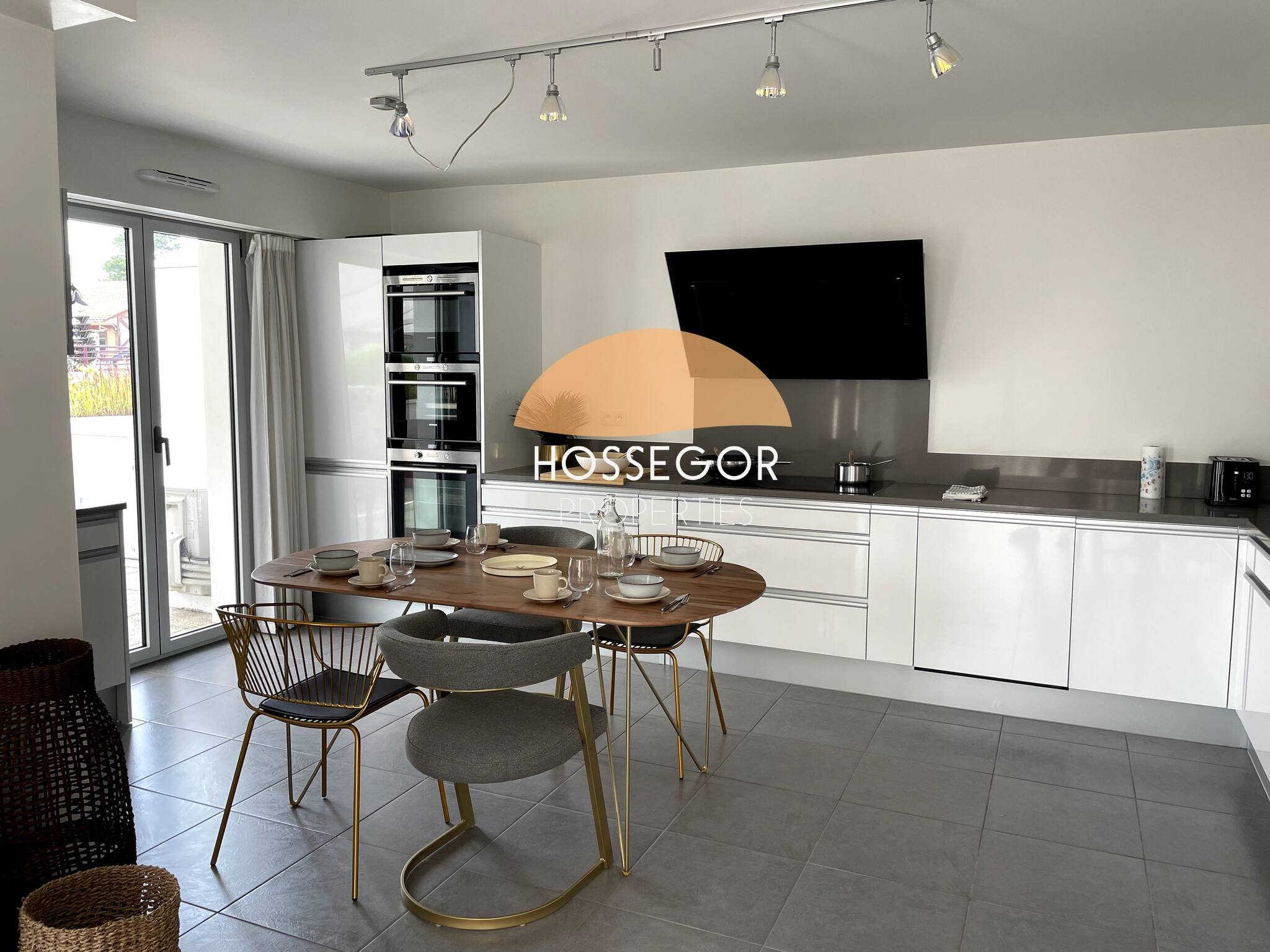 - Une grande cuisine équipée avec four traditionnel, four à vapeur, micro ondes, plaques à induction, hotte, lave vaisselle, réfrigérateur et congélateur, une cafetière type Nespresso, un grille pain et une bouilloire électrique.